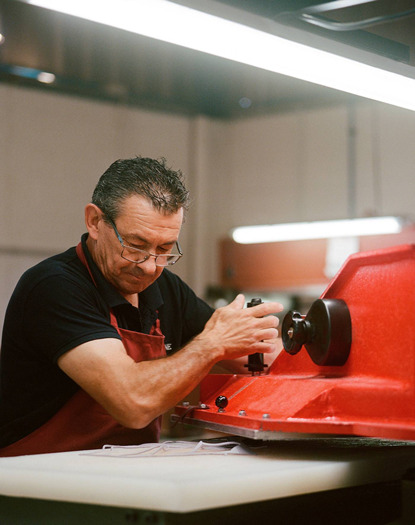 Ángel is the proud descendent of a family that has called Ubrique home for five generations. Like his father and grandfather before him, he has chosen to hand down his family name to his son, along with the values instilled in him through both work and soccer. His responsibilities as head of the cutting workshop include supervising the arrival and quality control of the hides and their cuts, a critical step in a bag’s production that sets the tone for all the other trades and workshops.